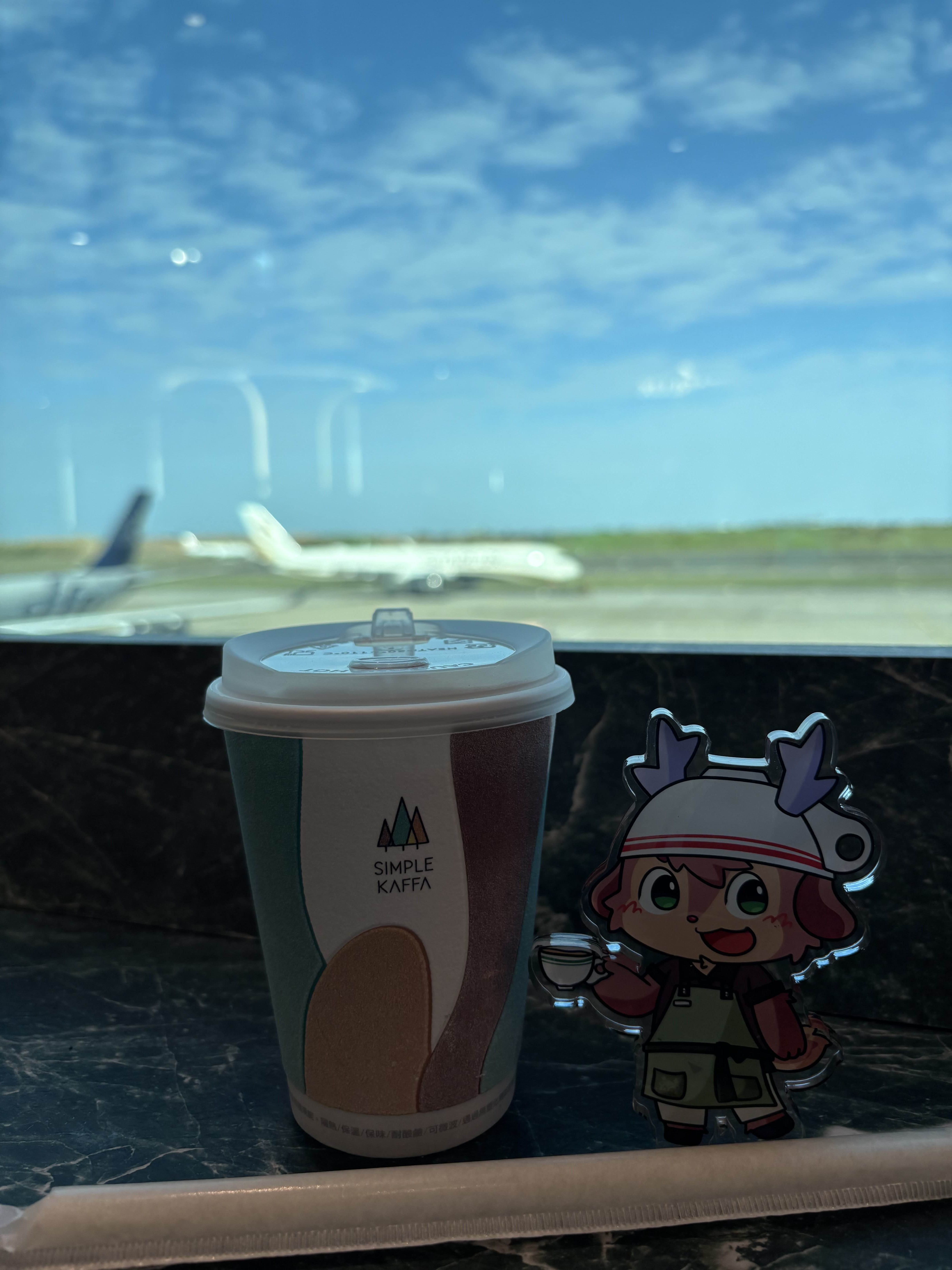 買了一杯黑糖珍珠咖啡拿鐵就準備上飛機了。