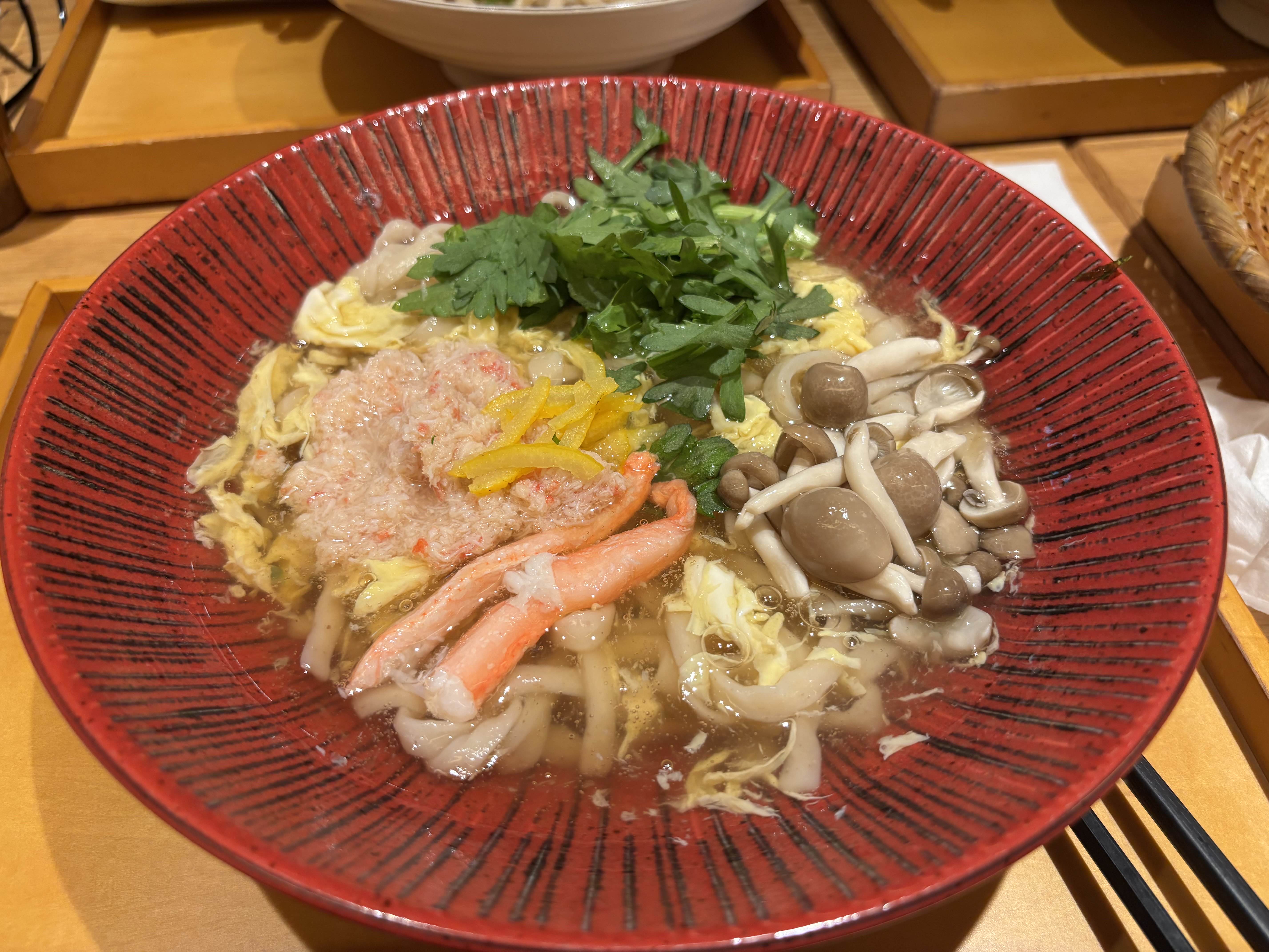 晚餐吃蟹肉蕎麥麵羹,很不錯下次也吃不到了。(因為是限定)